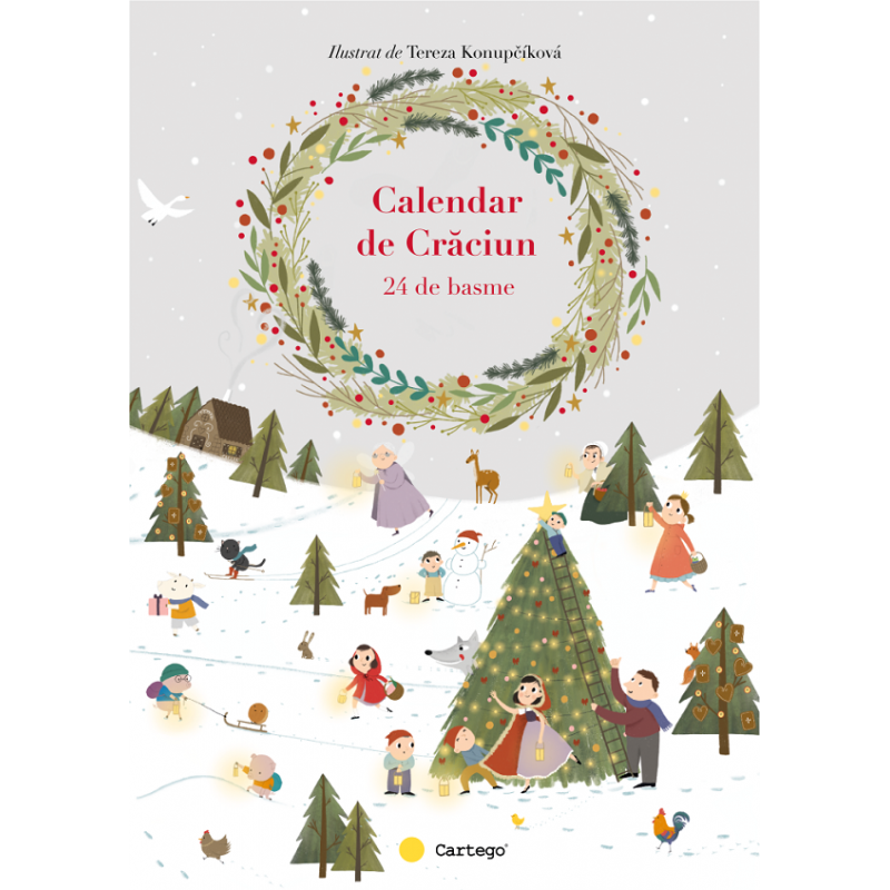 Urmeaza douazeci si patru de seri, care pot deveni mai interesante daca ai acest Calendar de Craciun. Am adunat douazeci si patru de basme din intreaga lume pentru cei mici si mai maricei, cu personaje fantastice - Printese si Animale, Scufita Rosie si Lupul, Alba ca Zapada si Piticii, Gogoasa si Cei Trei Purcelusi! Calendarul are si un secret. Vrei sa stii care e? Urmeaza instructiunile de pe coperta, dupa ce citesti toate basmele, si creaza-ti propria carte cu ajutorul panglicilor. Va arata superb in biblioteca ta! Si, la final, completeaza calendarul cu desenele tale de basm.