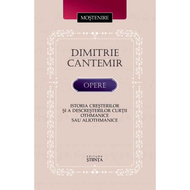 Ediţia de faţă include una dintre operele care i-au adus lui Dimitrie Cantemir faima şi autoritatea europeană de orientalist, tratatul Istoria creșterilor și a descreșterilor Curţii othmanice sau aliothmanice. Este o lucrare redactată în limba latină (Historia incrementorum et decrementorum Aulae othomanicae sive aliothmanicae) între anii 1714 şi 1716, care impresionează atât prin informaţie, cât şi prin interpretarea faptelor de cultură şi de istorie socială. Traducerea lucrării în limba română aparţine lui Dan Sluşanschi, editor al textelor latine ale lui Dimitrie Cantemir, iar studiul introductuv care o însoţeşte e semnat de reputatul cantemirolog, academicianul Virgil Cândea. Secţíunile „Repere cronologice” şi „Iconografie”, care însoţesc volumul, completează informaţia despre cărturar şi această operă fundamentală a lui.