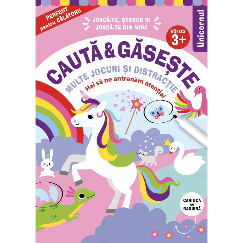 Cauta si gaseste - Unicornul. Hai sa ne antrenam atentia + Carioca cu radiera